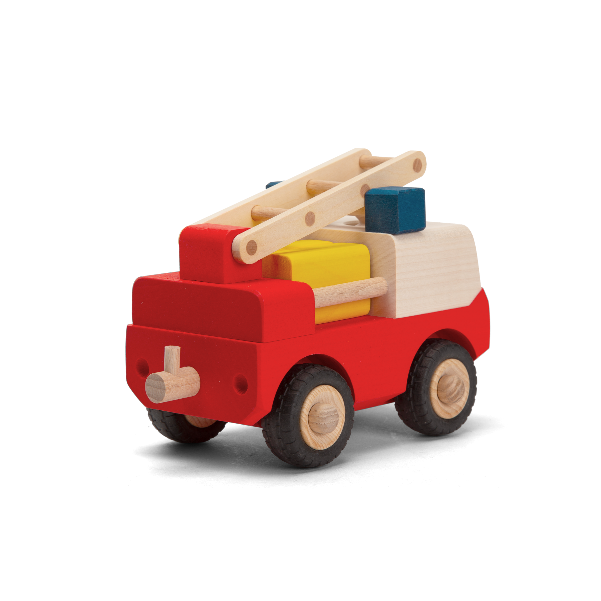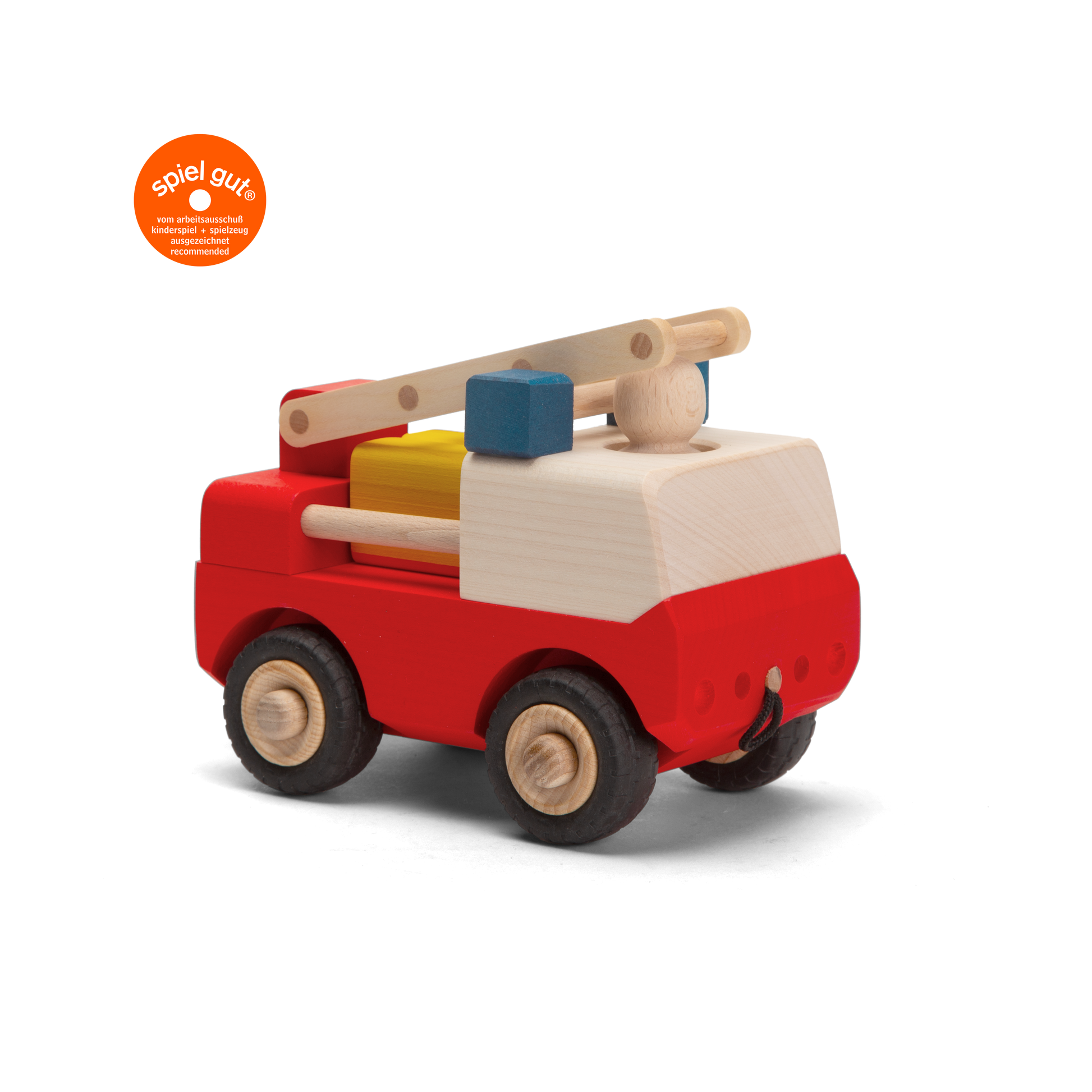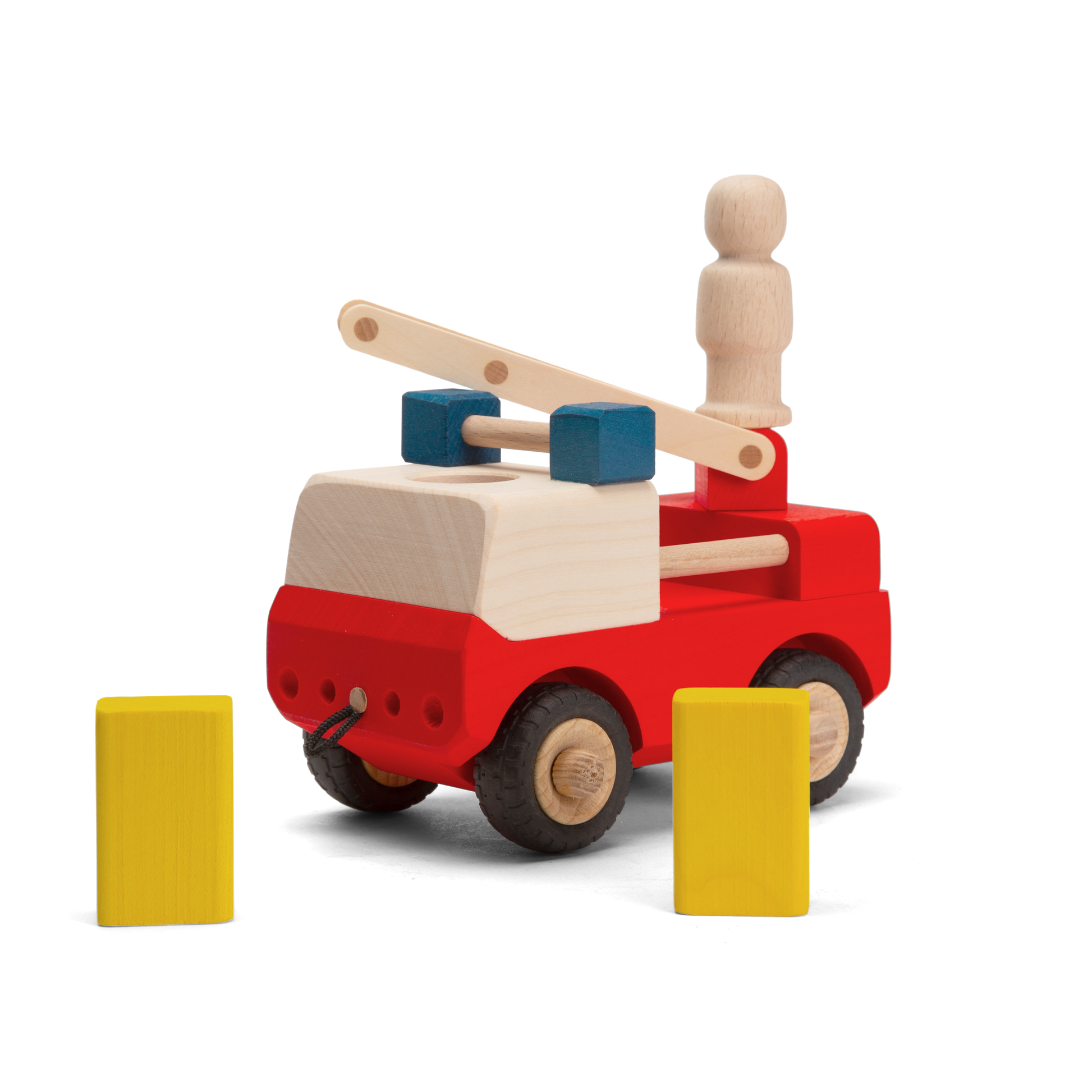 Produkt enthält Spielzeugauto Florian mit Figur und 2 Bausteinen aus Buche