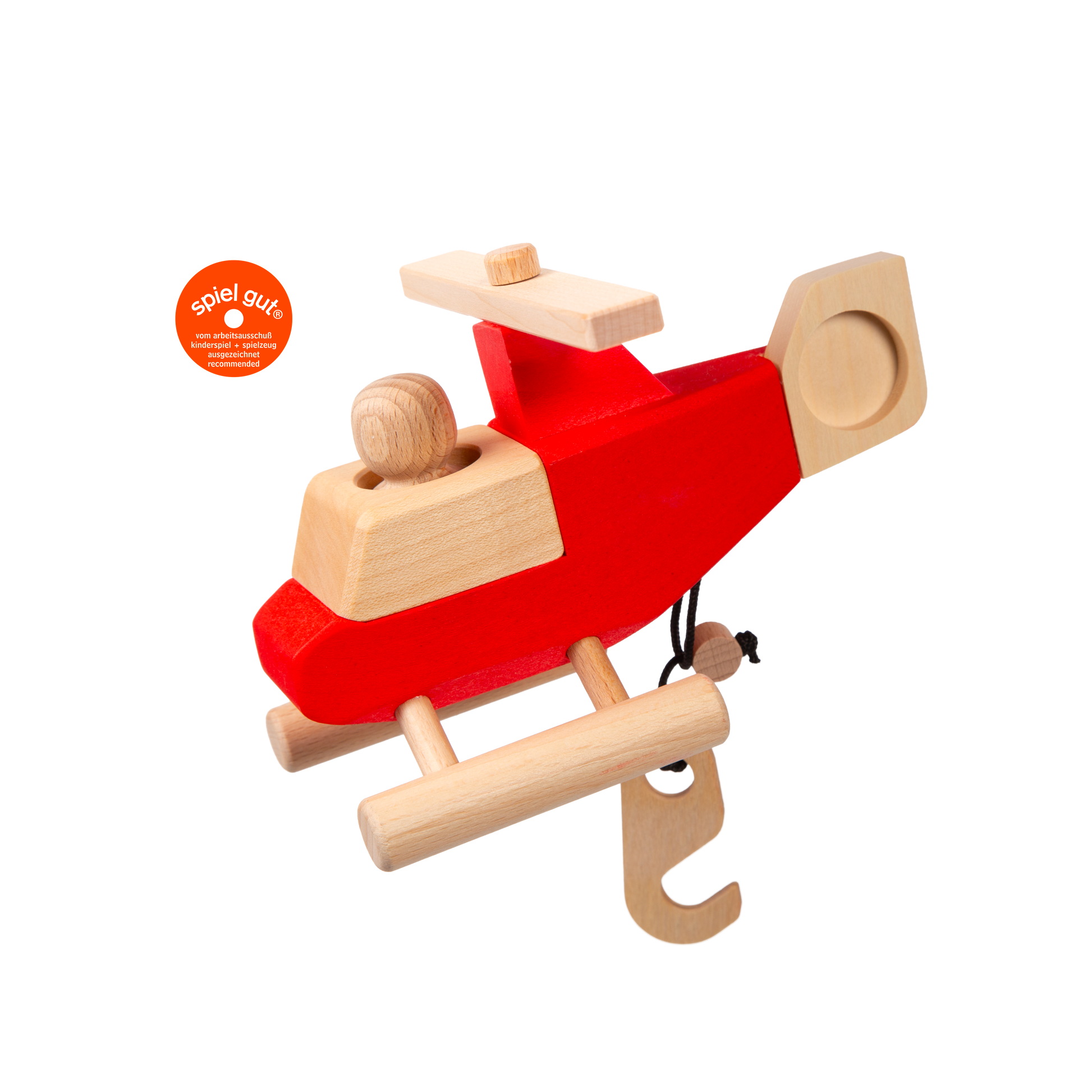 Spielzeug aus massivem Ahornholz mit Figur und Haken