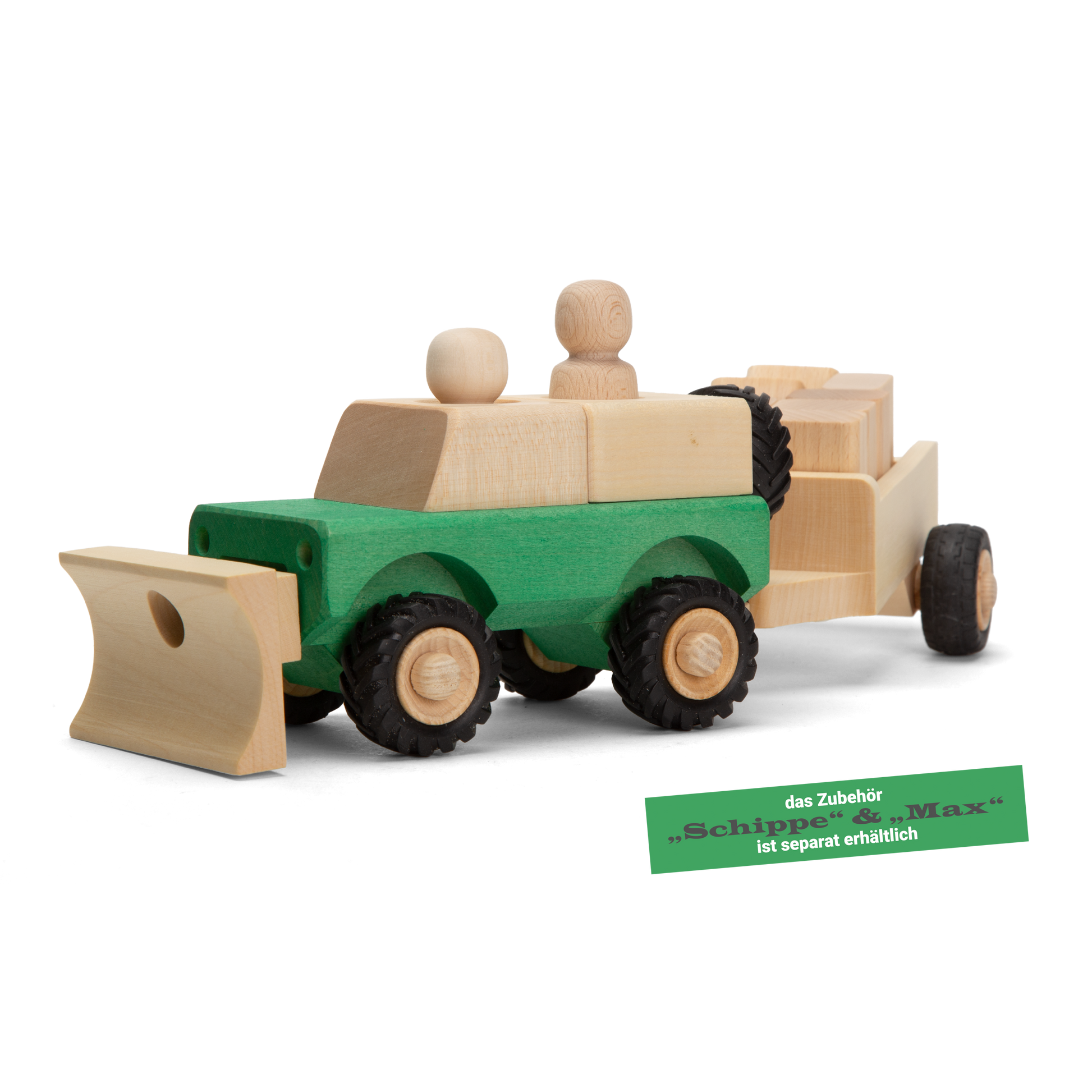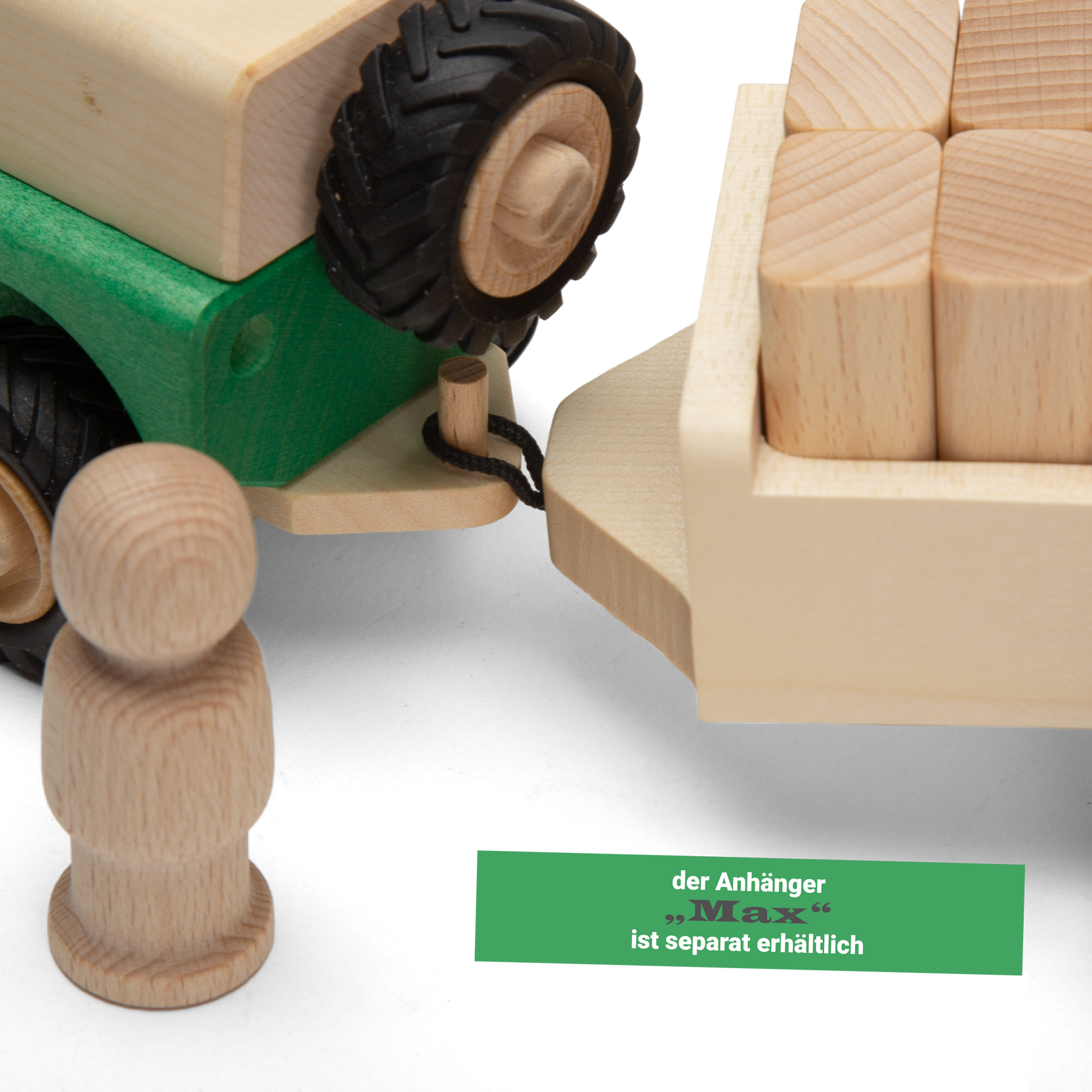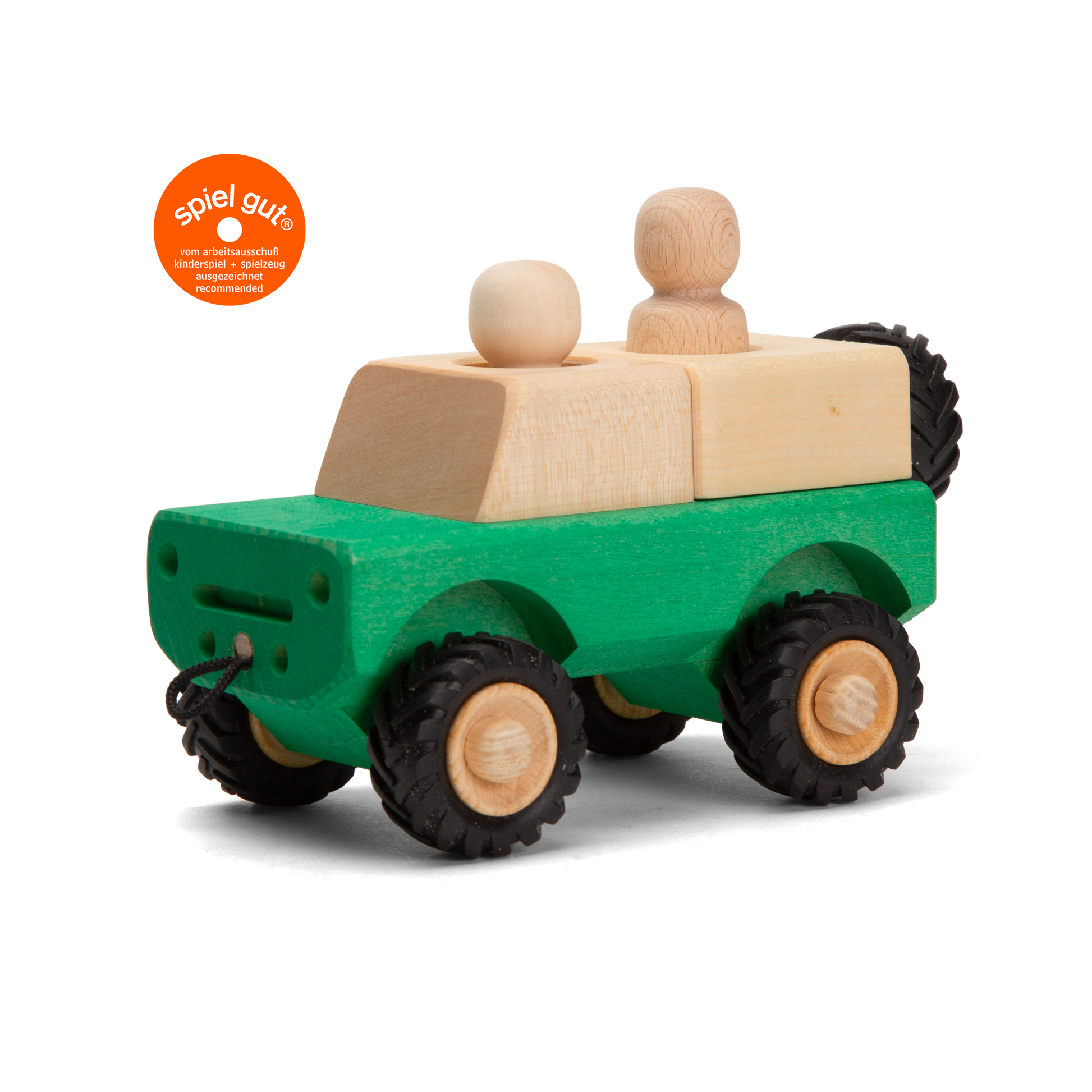 LEVIN kommt über Stock und Stein, selbst durch unaufgeräumte Kinderzimmer. Er hat Platz für 2 Figuren und ein Ersatzrad für Notfälle. Spielzeugauto Levin aus massivem Ahornholz mit einer Figur auch Buche, einer zweiten Figur aus Ahornholz und abnehmbarem Heckteil.Der Aufsatz kann von der Ladefläche abgenommen werden. Anhängerkupplung und Abschleppschlaufe bieten Kombiniermöglichkeiten mit anderen Produkten
